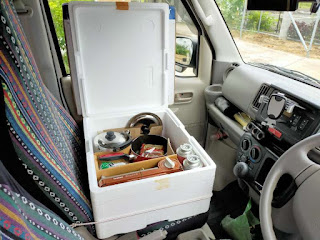 車中泊用にDIYした軽バンを1人用に特化すると、助手席のスペースはとても貴重です。その利用例として、自作の"助手席設置の収納兼用テーブル"の紹介です。